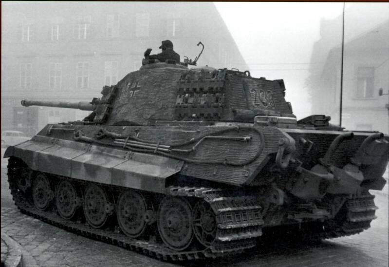 The Tiger II was the successor to the Tiger I, combining the latter's thick armour with the armour sloping used on the Panther medium tank. The tank weighed almost 70 tonnes, and was protected by 100 to 185 mm (3.9 to 7.3 in) of armour to the front. It was armed with the long barrelled 8.8 cm KwK 43 L/71 anti-tank cannon. The chassis was also the basis for the Jagdtiger turretless Jagdpanzer anti-tank vehicle.